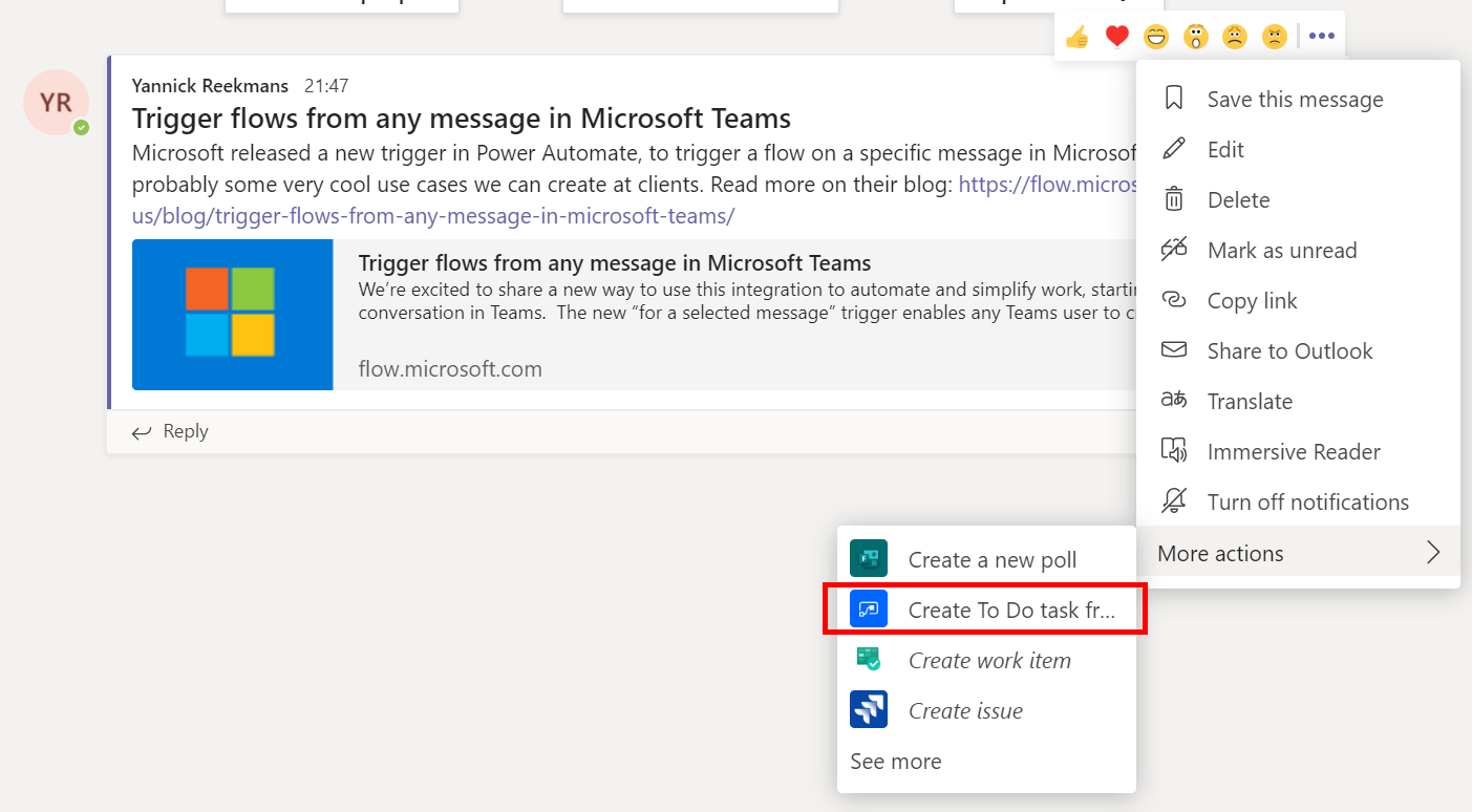 - Link from the Task in To Do back to the message in Microsoft Teams