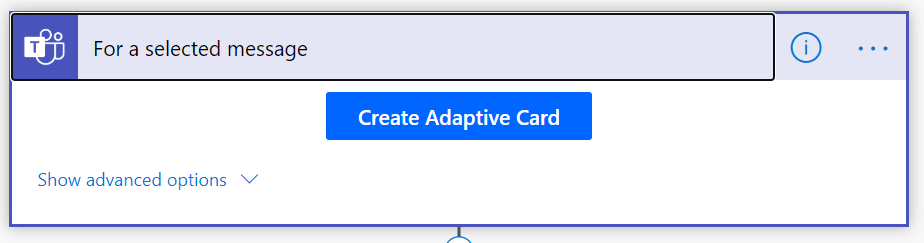 This trigger allows you to use an Adaptive Card to ask more input. In this specific case, I opted not to and just let the flow trigger directly.