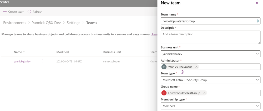More and more people are using Teams in Power Platform that are connected to a Microsoft Entra ID Security Group or Microsoft Entra ID Office Group. This has the advantage of managing membership through a Security Group in Microsoft Entra ID, and having it automatically be implemented on Power Platform because a Team can have Security Roles and Column Security Profiles associated.
