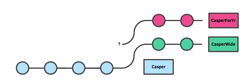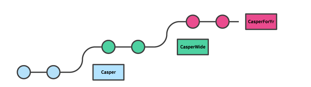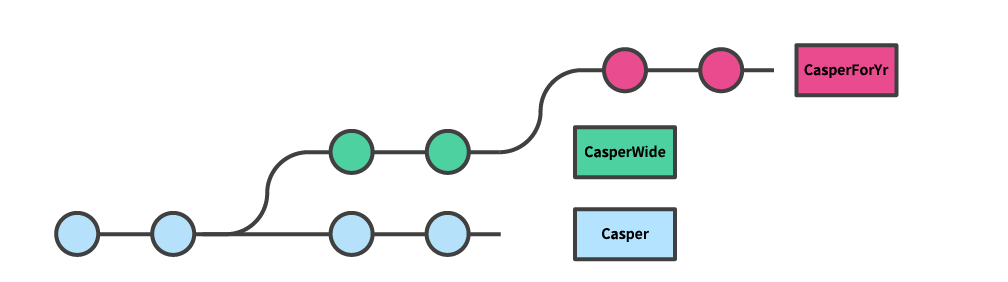 New updates are made to Casper, which aren't in CasperWide or CasperForYr anymore. I'd like to apply the updates I made in CasperWide on top of the new updates in Casper, or you could say that I want to rebase my changes of CasperWide on the latest repository of Casper. The end result should look something like this: