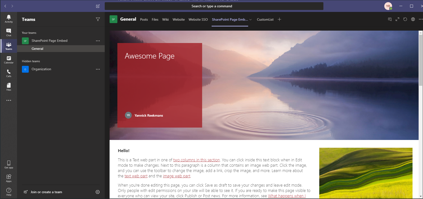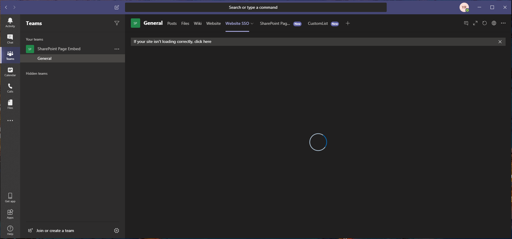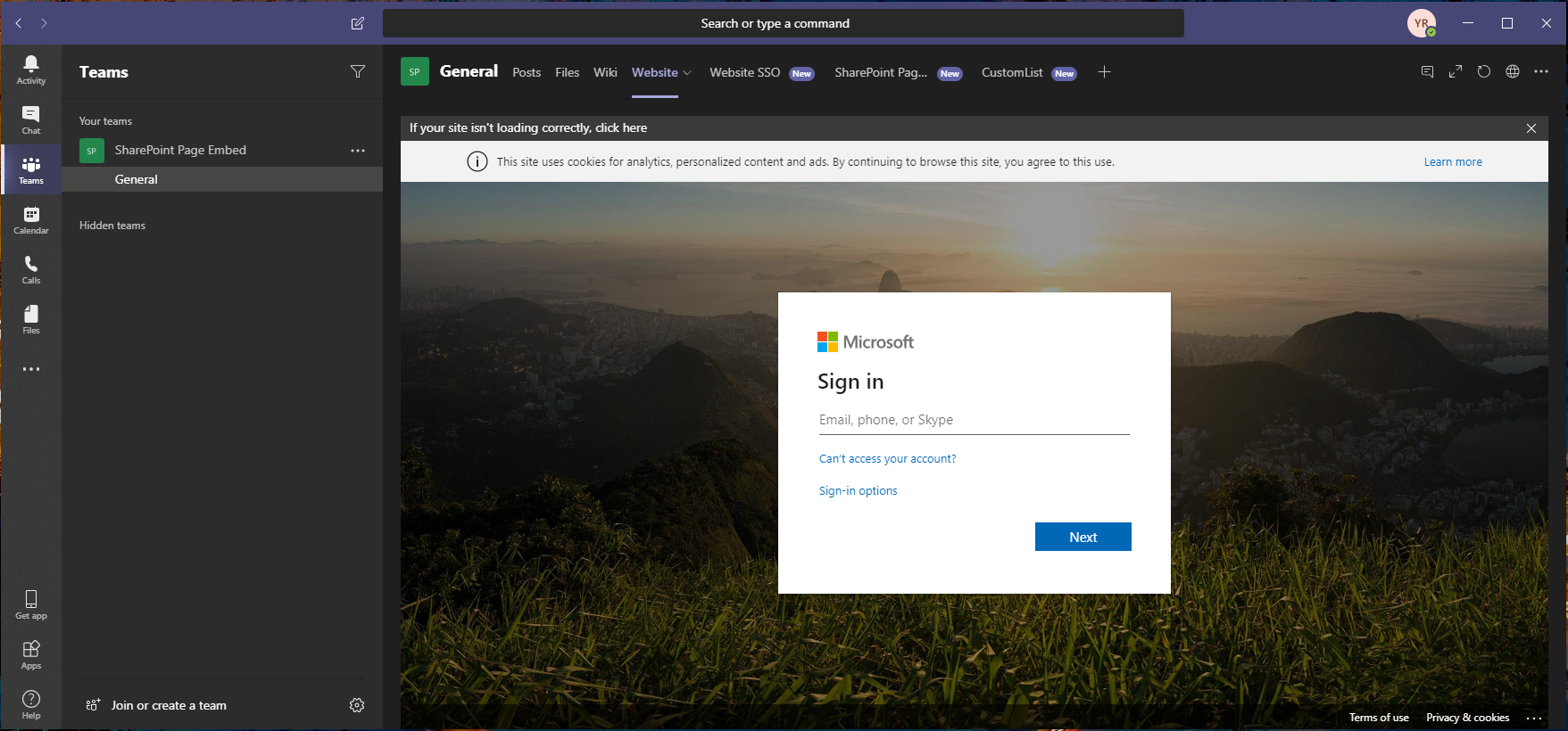 The SharePoint Page Embed custom app makes sure that any SharePoint page will load without an issue inside a tab in a Microsoft Teams team, with SSO and without additional login requests: